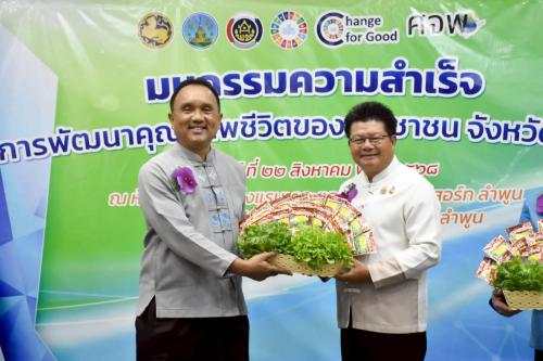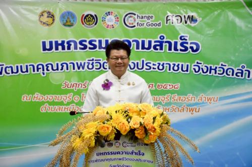 วันนี้ (วันศุกร์ที่ 22 สิงหาคม 2568) เวลา 09.00 น. ณ ห้องจามจุรี 1 โรงแรมเดอะแกรนด์จามจุรี รีสอร์ท จังหวัดลำพูน นายวิวัฒน์ อินทร์ไทยวงศ์ ผู้ว่าราชการจังหวัดลำพูน มอบหมายให้ นายชาตรี ธินนท์ รองผู้ว่าราชการจังหวัดลำพูนเป็นประธานเปิดมหกรรมความสำเร็จการพัฒนาคุณภาพชีวิตของประชาชนจังหวัดลำพูน โดยมี นายประจักษ์จิตร สายนะที พัฒนาการจังหวัดลำพูน กล่าวรายงาน พร้อมด้วย นายอำเภอลี้ รองนายกเหล่ากาชาดจังหวัดลำพูน คณะกรรมการบริหารศูนย์อำนวยการขจัดความยากจนและพัฒนาคนทุก ช่วงวัยอย่างยั่งยืนตามหลักปรัชญาเศรษฐกิจพอเพียงจังหวัด, อำเภอ บุคลากรหน่วยงานภาครัฐและเอกชน ผู้แทนเครือข่ายกลุ่มองค์กรที่เกี่ยวข้อง จำนวน 60 คน โดยรองผู้ว่าราชการจังหวัดลำพูน ได้มอบเมล็ดพันธุ์พืชผักสวนครัว เพื่อสนับสนุนการสร้างความมั่นคงทางอาหาร ให้กับพัฒนาการอำเภอเพื่อขยายผลต่อให้ครัวเรือนเป้าหมาย ทั้ง 8 อำเภอ พร้อมเยี่ยมชมนิทรรศการฯ สำหรับกิจกรรมในวันนี้ ประกอบด้วย การจัดนิทรรศการความสำเร็จการพัฒนาคุณภาพชีวิตของประชาชนระดับอำเภอ จำนวน 8 อำเภอ และนิทรรศการ Re-Brand IPA “สุขนี้ ที่ ลำพูน” เวทีเสวนาผลสำเร็จการพัฒนาคุณภาพชีวิตของประชาชน ในหัวข้อ “ ลำพูนไม่ลำพัง รวมพลังเพื่อลำพูน แก้จน สร้างคน สร้างสุข”